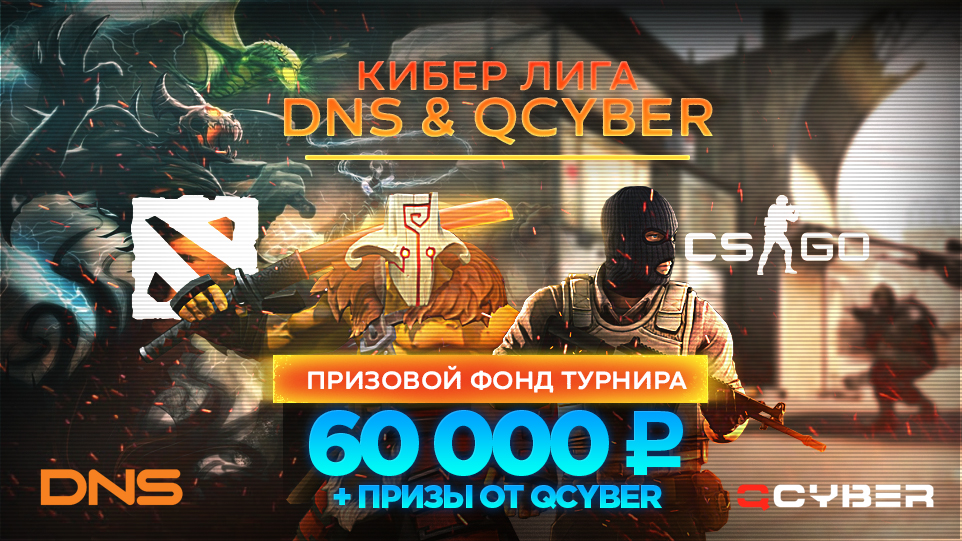 Qcyber и DNS совместно с Click-Storm.com проведут турниры по Dota 2 и CS:GO с призовым фондом более 60 000 рублей. 28 и 29 апреля пройдут квалификации, в которых может участвовать любой желающий. Четыре лучших команд сыграют в финале 5 и 6 мая, где будут бороться за главные призы.