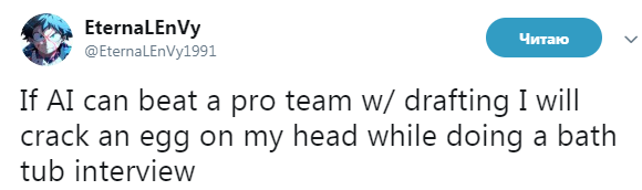 Если ИИ выиграет профессиональную команду с полным набором героев, то я разобью яйцо об голову во время интервью в ванной.