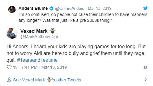 Андерс Блюм: "Не понимаю, разве люди больше не воспитывают манеры в своих детях? Это было похоже на вещи до 2000-х годов?" (прим.пер.)