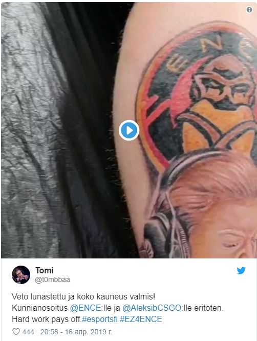Tomi успел публично заявить, что сделает тату после резонансного выхода финской команды в финал мейджора по CS:GO в Катовице. И хотя ENCE в финале не смогли ничего противопоставить Astralis, от своих слов комментатор не отказался.