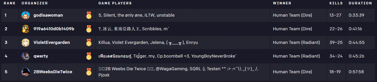 Таким образом, они занимают первую строчку в таблице лидеров на момент написания новости. Следить за результатами других команд и игроков вы можете на этой странице.