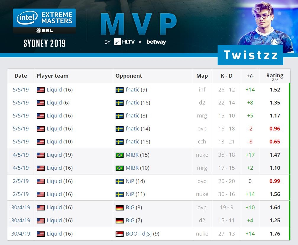 Звание лучшего игрока турнира получил Рассел "Twistzz" Ван Далкен, его KDA за 12 карт составил 1.25.