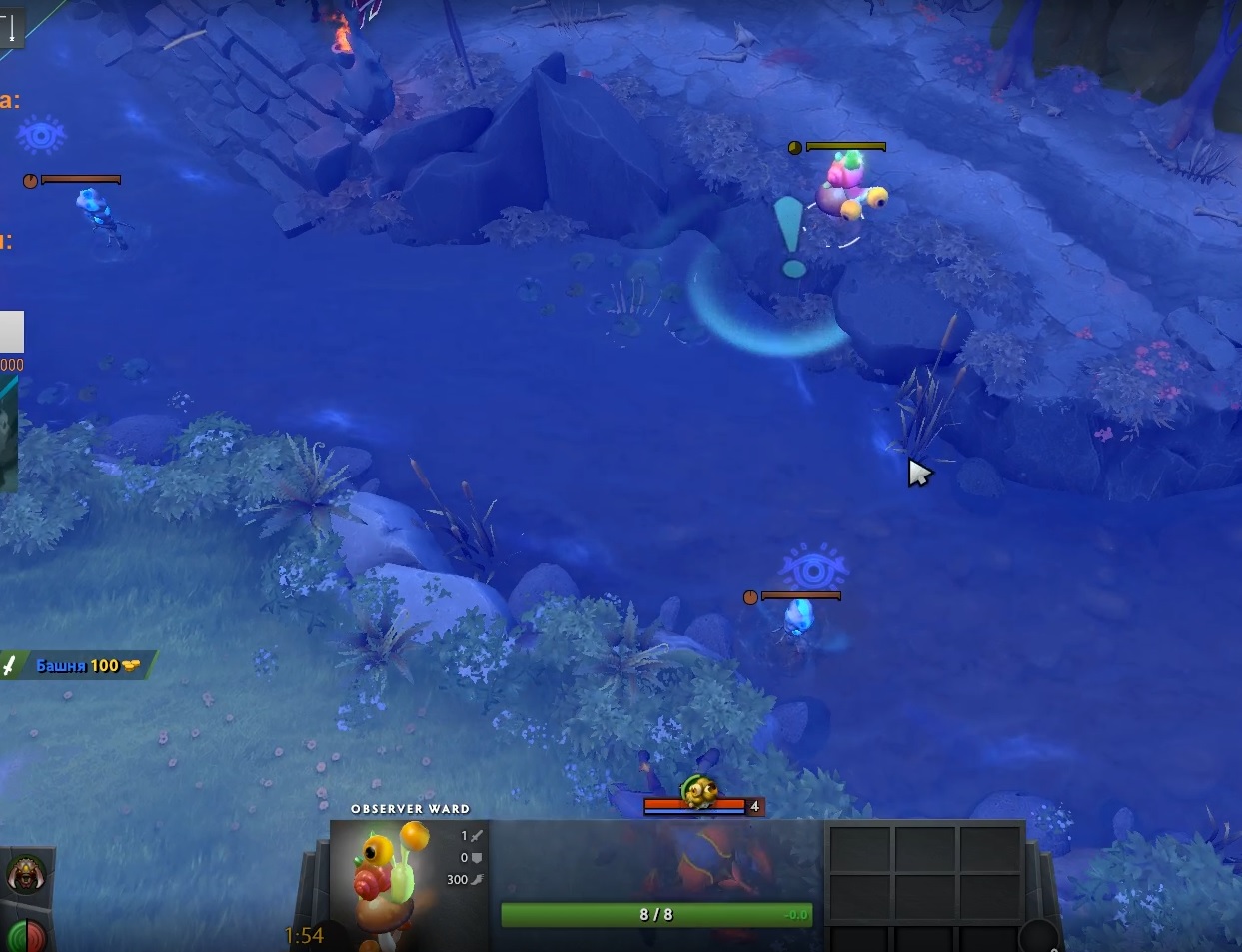 спавна крипов, ждёт пока наступит 4 минута, чтобы узнать, почему не респавнятся крипы на этом кэмпе и по наступлению четвёртой минуты понимает, что этот спавн просто напросто заблочен вардом.
