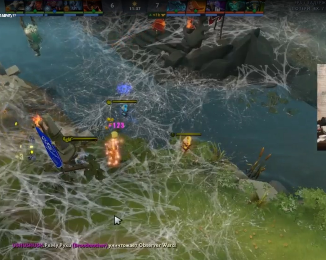 Также и в этой игре против Евгения - команда broxy используя 19 сентри вардов умудряется сломать всего 2 обсервер варда, которые были поставлены на дефолтных местах.